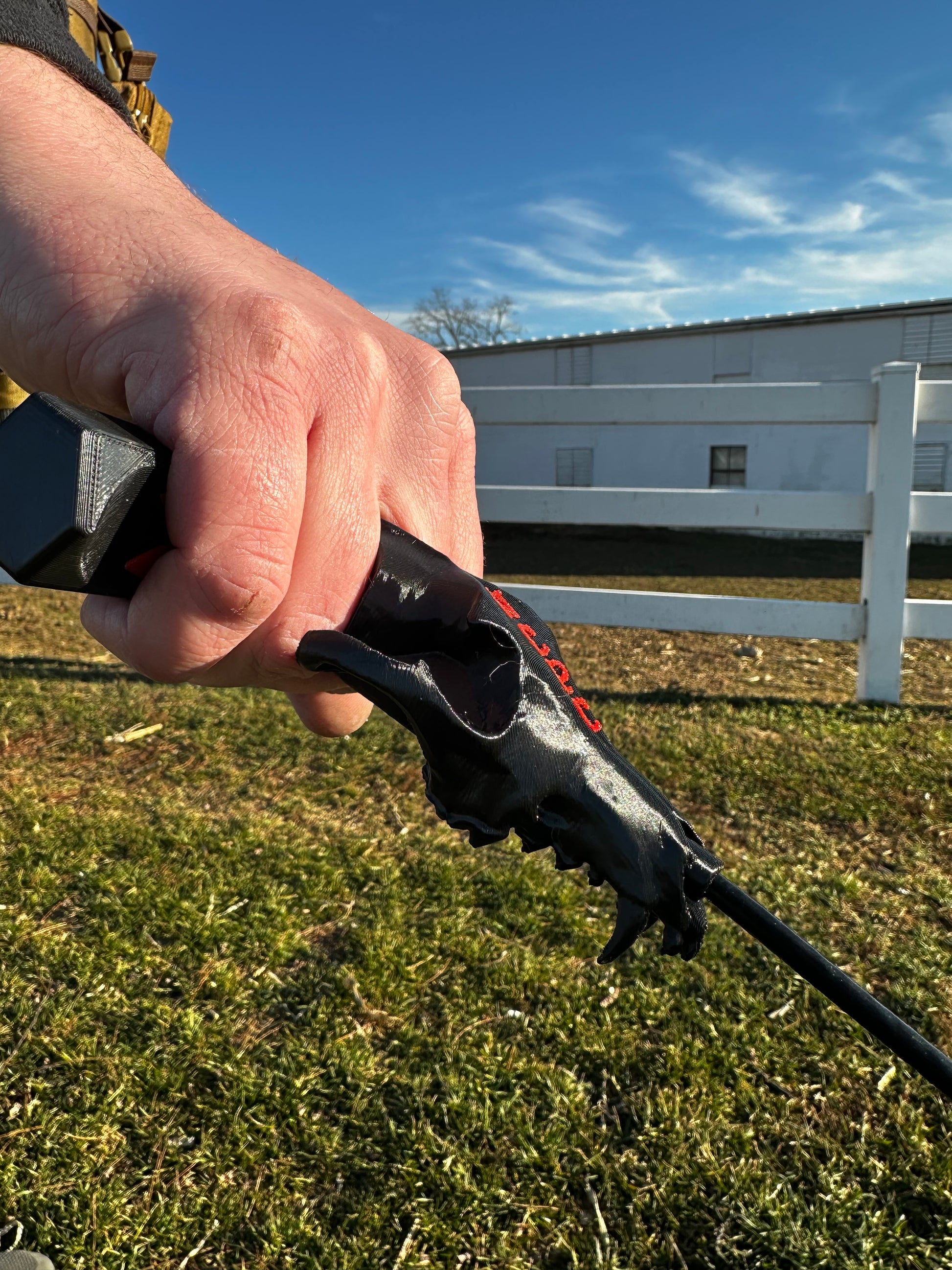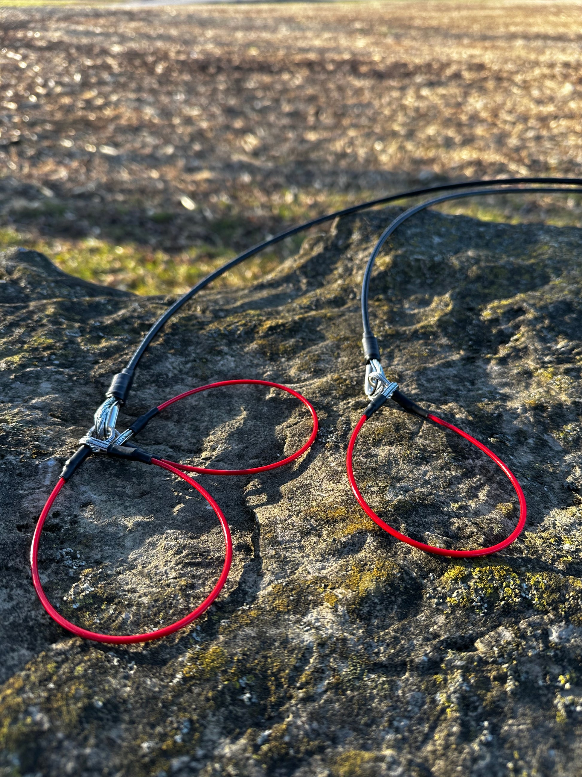Our Skull Drag is here to work for you and look good while doing it when your hard at it stackin' fur! With a handle notched to provide a solid grip for anyone using it, connected to a strong coated stainless cable coming from a scaled down coyote skull that just looks clean. At the end you'll have the choice of a single or double lead to attach to a foot or jaw! The cable also wraps up tightly to slip back into your pocket or chest rig!
